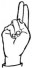 На ћирилици написано БИСЕРА БОЖОВИЋ састоји се из 13 слова [?]. Исписано ћириличном једноручном азбуком за глувонеме: